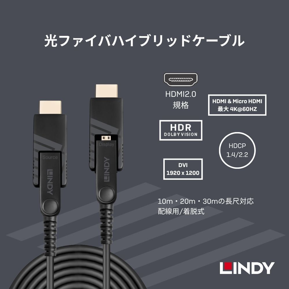【38322】30m HDMI 2.0 18G 4K@60Hz 光ファイバハイブリッドケーブル、 HDMI to DVI変換コネクタ付