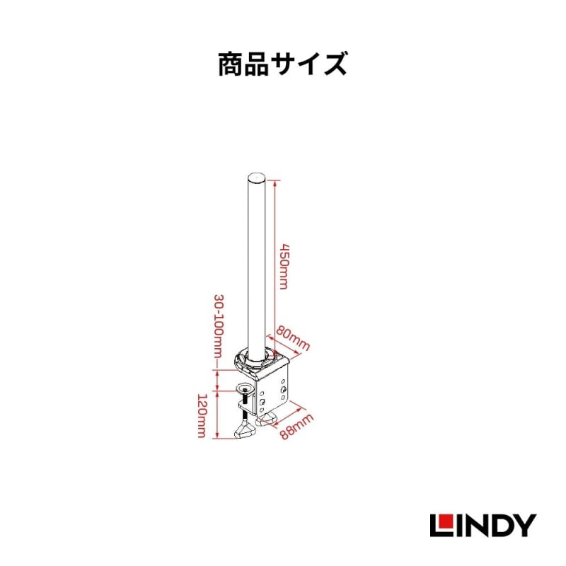 4.ロッドクランプ(設置可能なデスクトップ厚さ30mm ~ 100mm)
