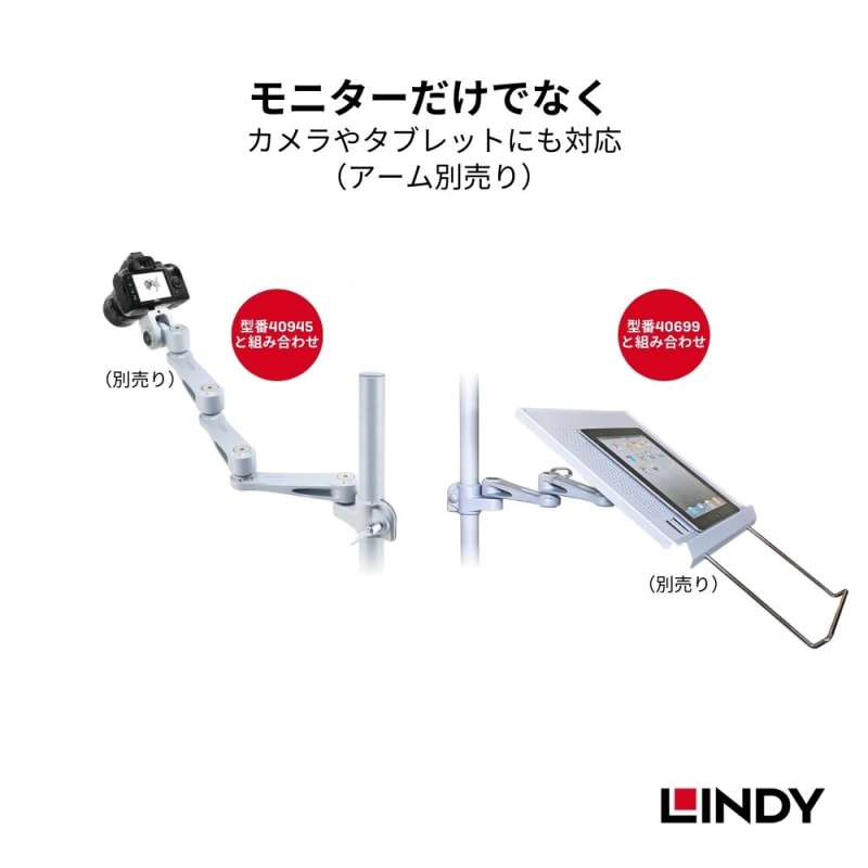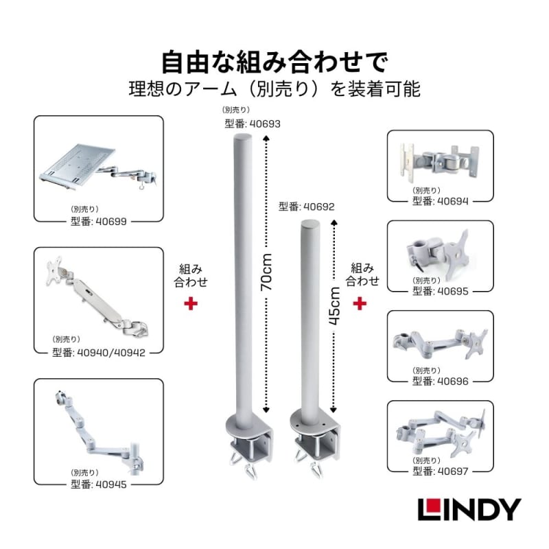 適合するアームを自由に取付け可能(アームは別売り、型番:40694、40695、40696、40697、40940、40942、40945、40699)