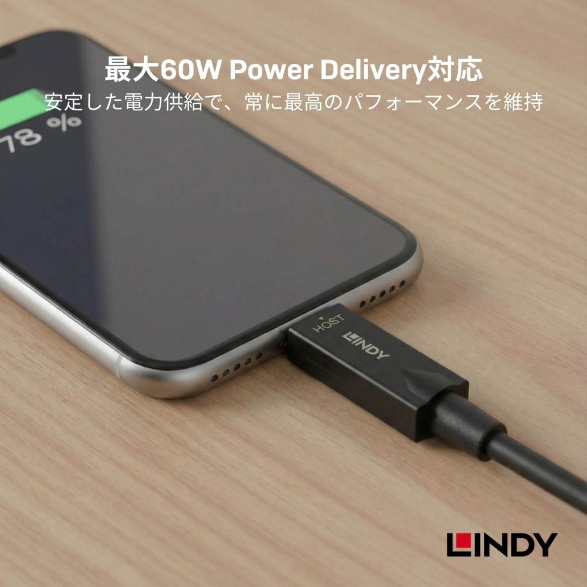USB PD3.0、最大電力60Wの充電を対応しています