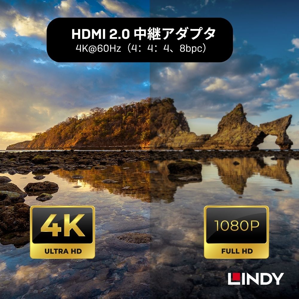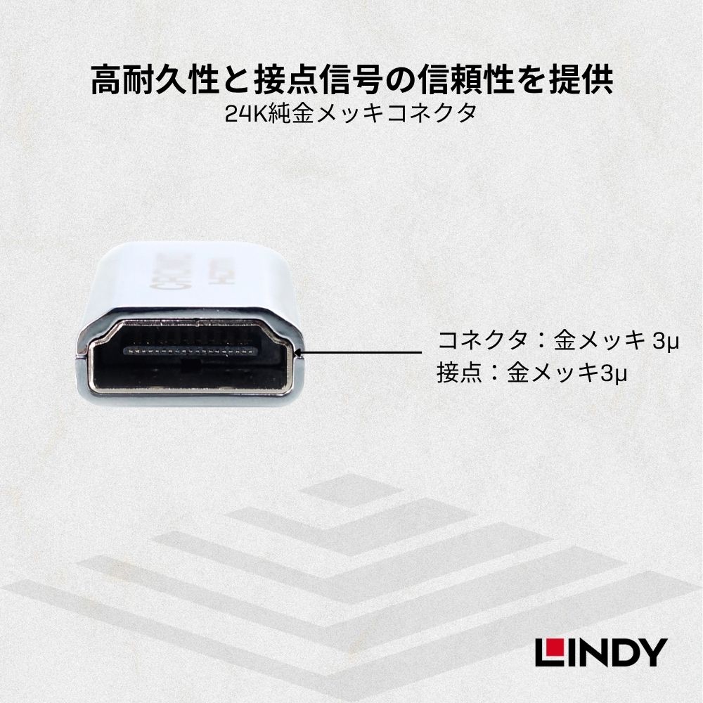 2.解像度が4K@60Hzの場合、直列接続は1回に限定され、LINDY HDMI 2.0 伝送ケーブルを使用し、直列接続の総長は 10m を超えないことをお勧めします