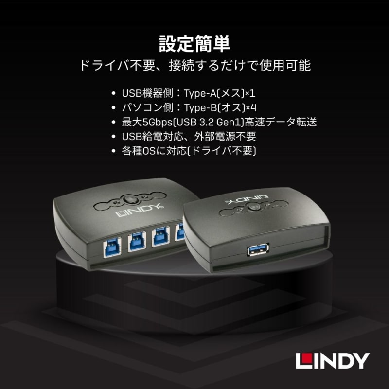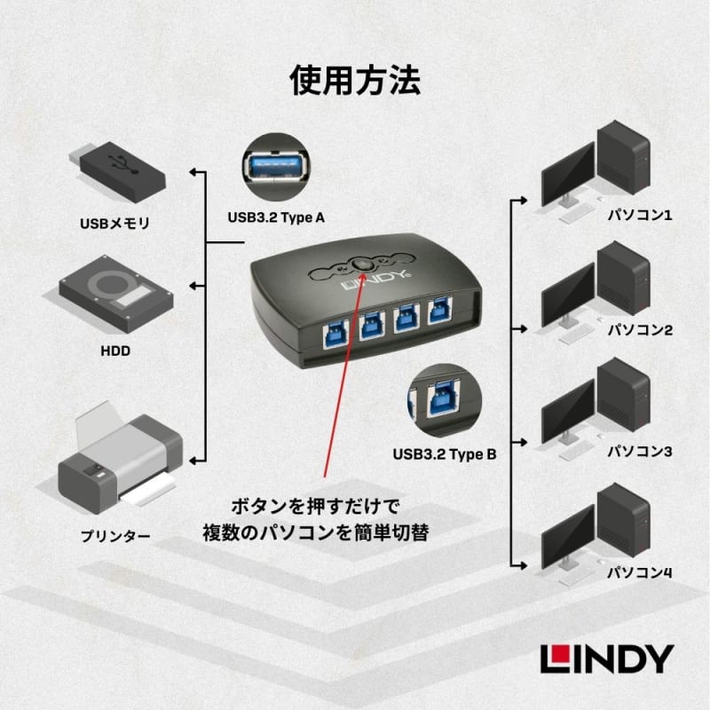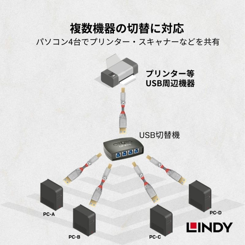 1台のUSBデバイスを4台のコンピュータに提供して切り替え可能