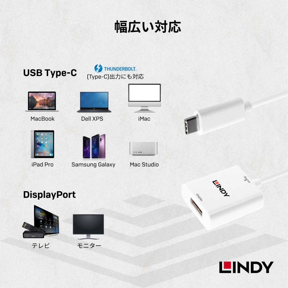 • すべてのVESA DisplayPort Alternate modeをサポートするUSB Type-C デバイスに適用可能