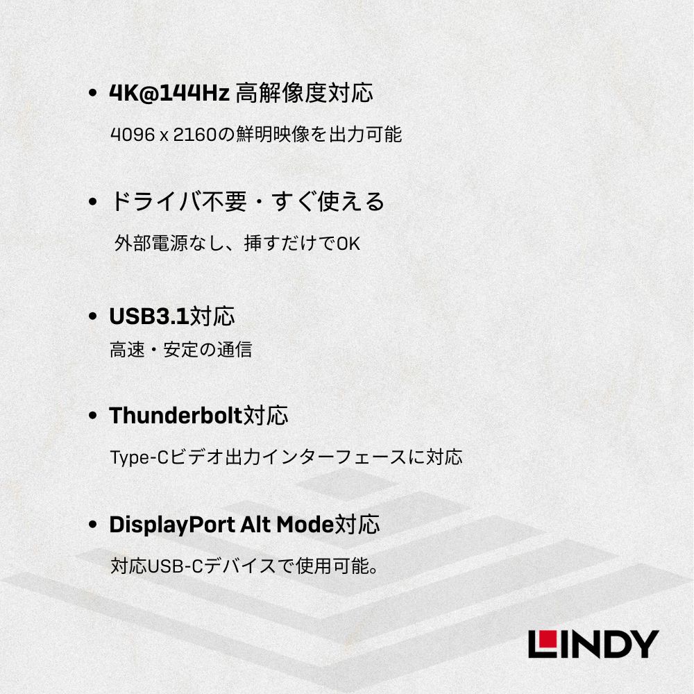 • 最大4K@144Hzの最高解像度をサポートし、下位互換性があります。(144Hz設定の場合は、デバイスのUSB Type-C側と接続する画面が対応しているか必ずご確認ください)