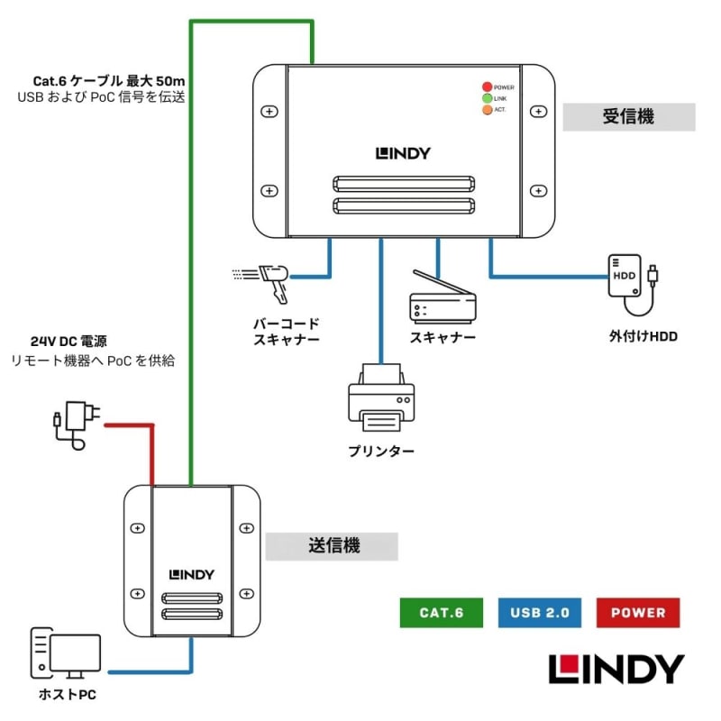 ネットワークケーブルを介して送信側に電力を送信できるため、送信側に電力を追加する必要がありません