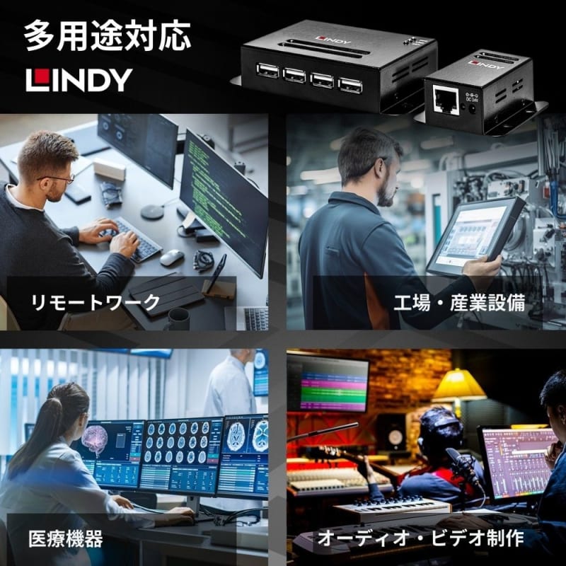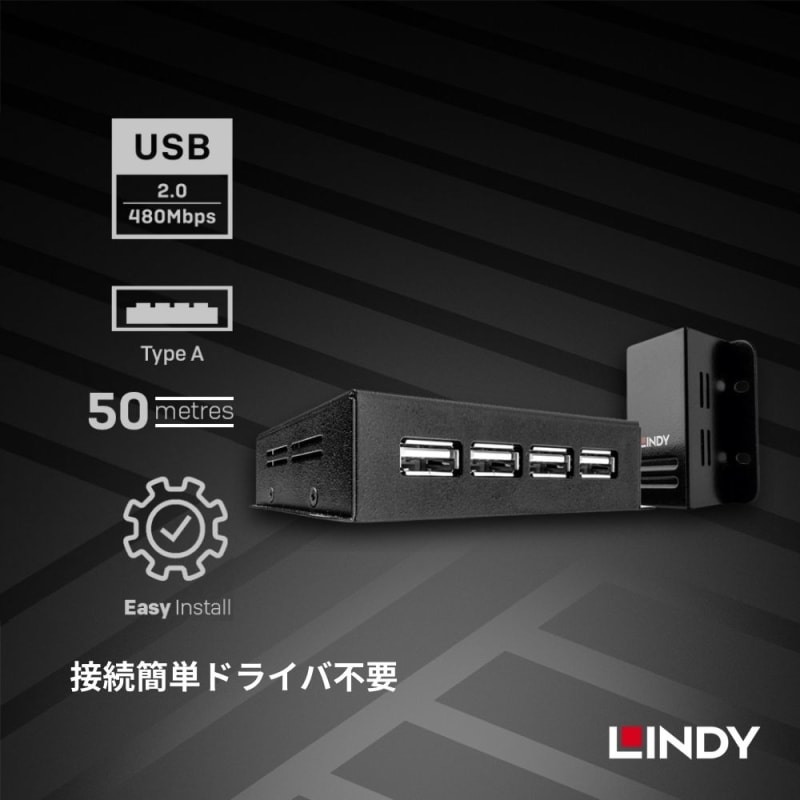 受信側(RX):USB 2.0 Type-A 4 ポート ハブ / RJ45コネクタ