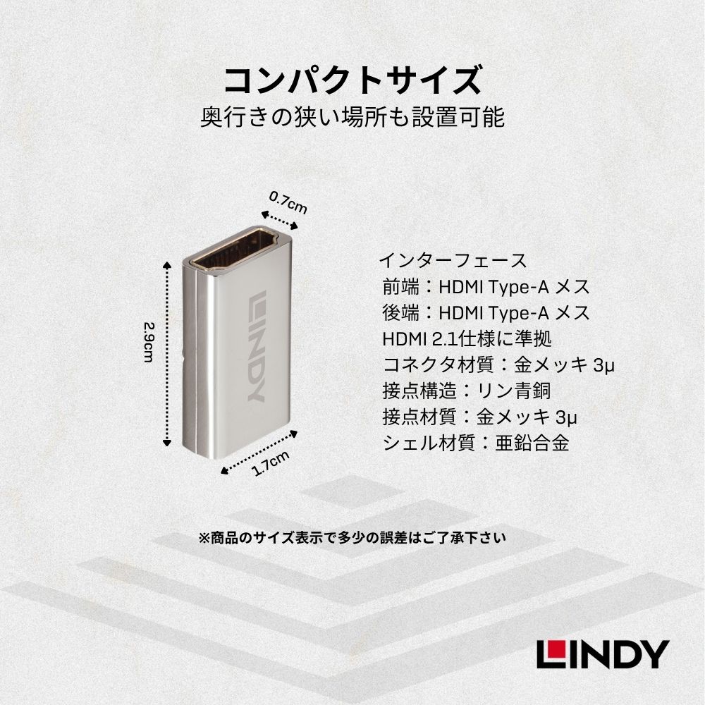 2.解像度が4K@120Hzの場合、直列接続は1回に限定され、LINDY HDMI 2.1 伝送ケーブルを使用し、直列接続の総長は10mを超えないことをお勧めします