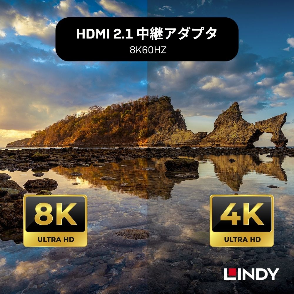 3.解像度が8K@60Hzの場合、直列接続は1回に限定され、LINDY HDMI 2.1 伝送ケーブルを使用し、直列接続の総長は7mを超えないようにすることをお勧めします