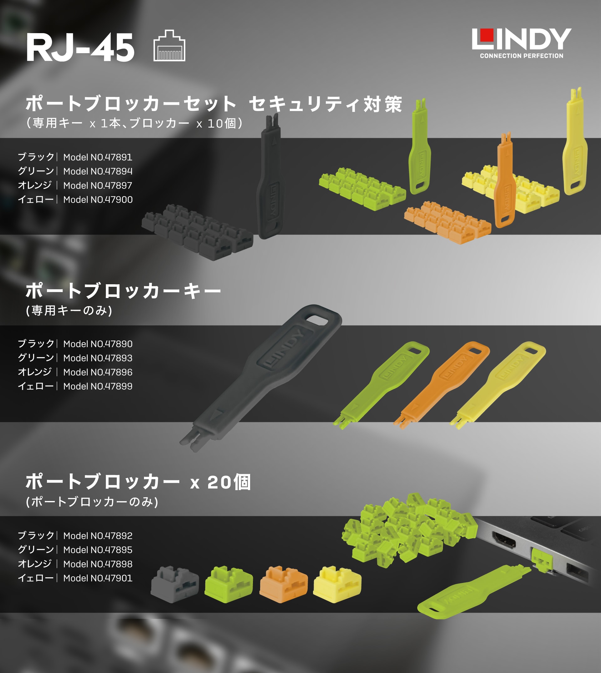 ● 各セットにRJ-45専用キー1本とブロッカー10個が付属しています