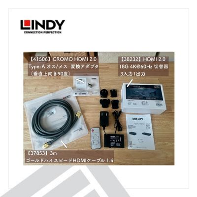 【41506】CROMO HDMI 2.0 Type-A オス/メス 亜鉛合金金メッキ変換アダプタ、垂直上向き90度 【38232】HDMI 2.0 18G 4K@60Hz 切替器、 3入力1出力 著者:𝚗𝚊𝚊さん